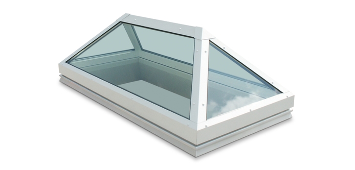 De glaspiramide is een goed isolerende daglichtoplossing in een moderne en elegante stijl. De 45° constructie bestaat uit isolerend veiligheidsglas in een slank aluminium met kunststof frame, voorzien op een opstand.
