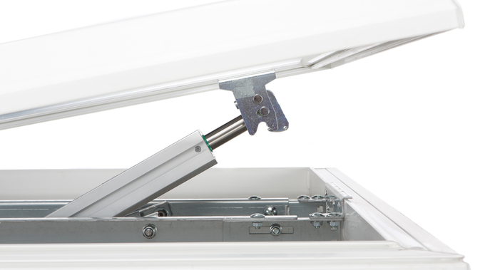 Het Decorit RWA 160°-systeem is een rook- en warmteafvoersysteem met een ventilatiefunctie. Bij alarm opent de koepel tot een opening van 160° en voor dagelijkse ventilatie kan de koepel geopend worden in elke positie.